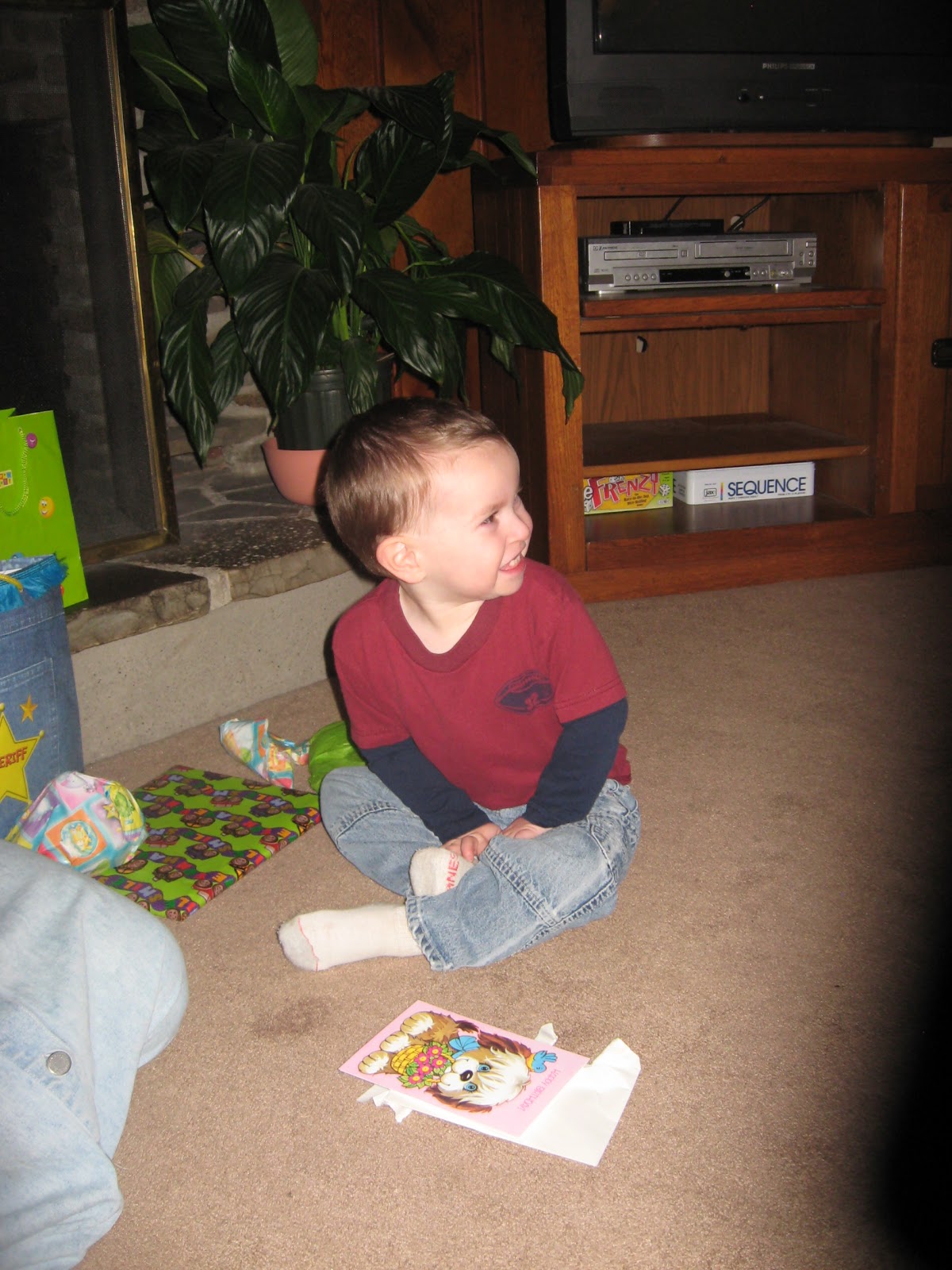 Isaiah with his card and gifts! |